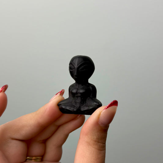 Obsidian alien carving