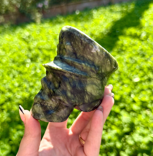 Green aventurine skull carving