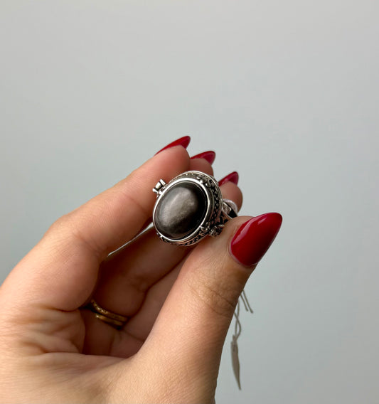 Silver Sheen Obsidian adjustable locket ring