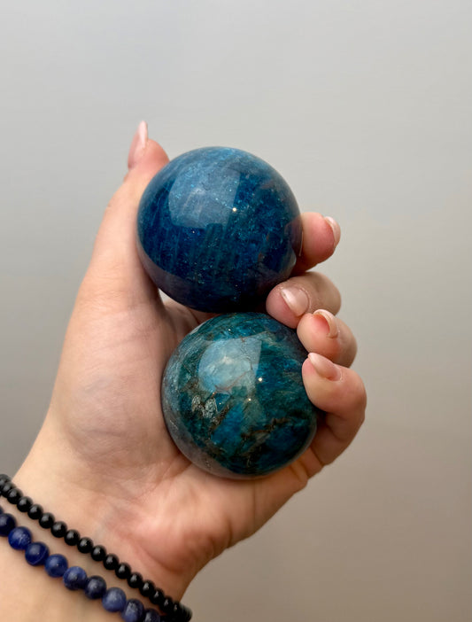 Blue apatite spheres