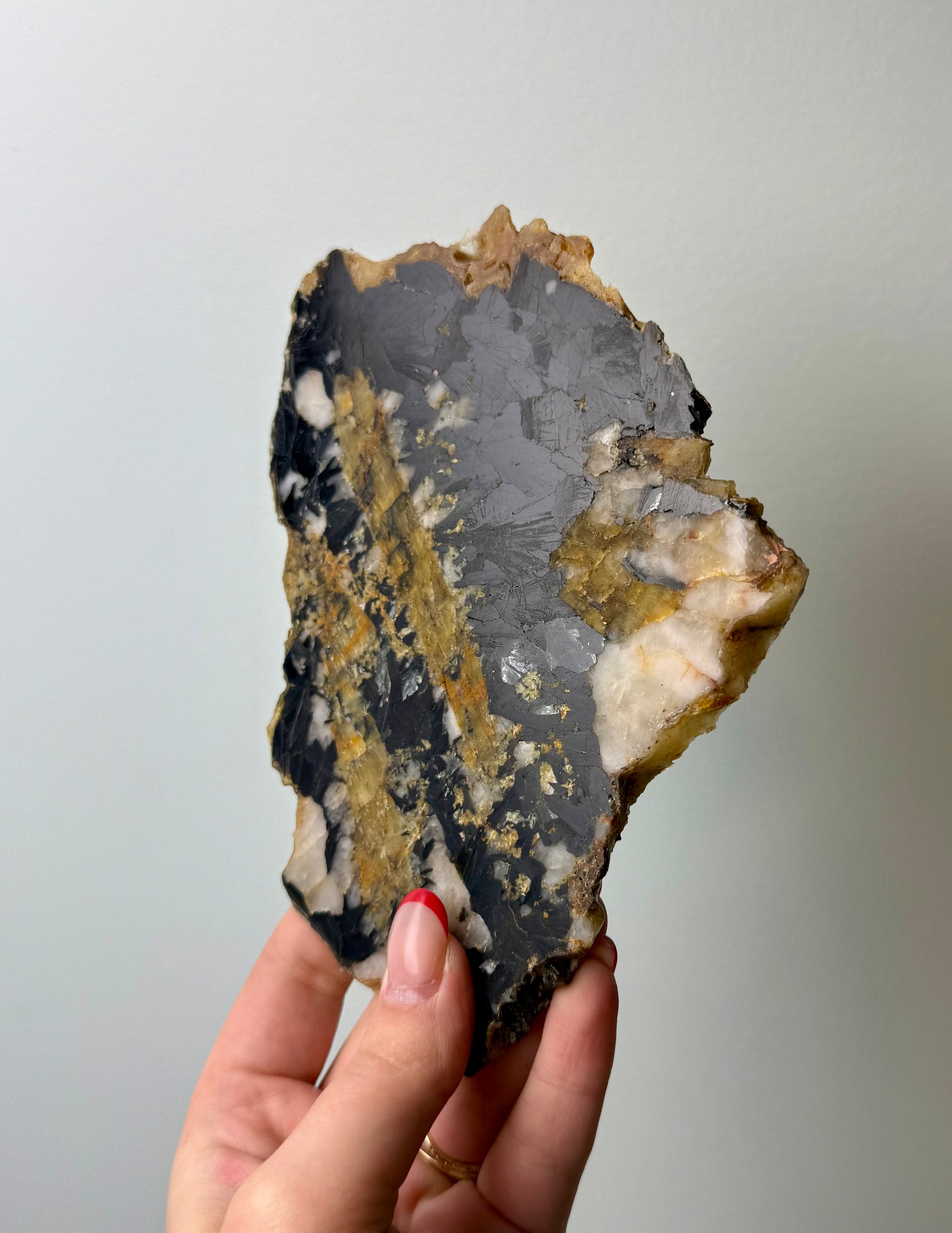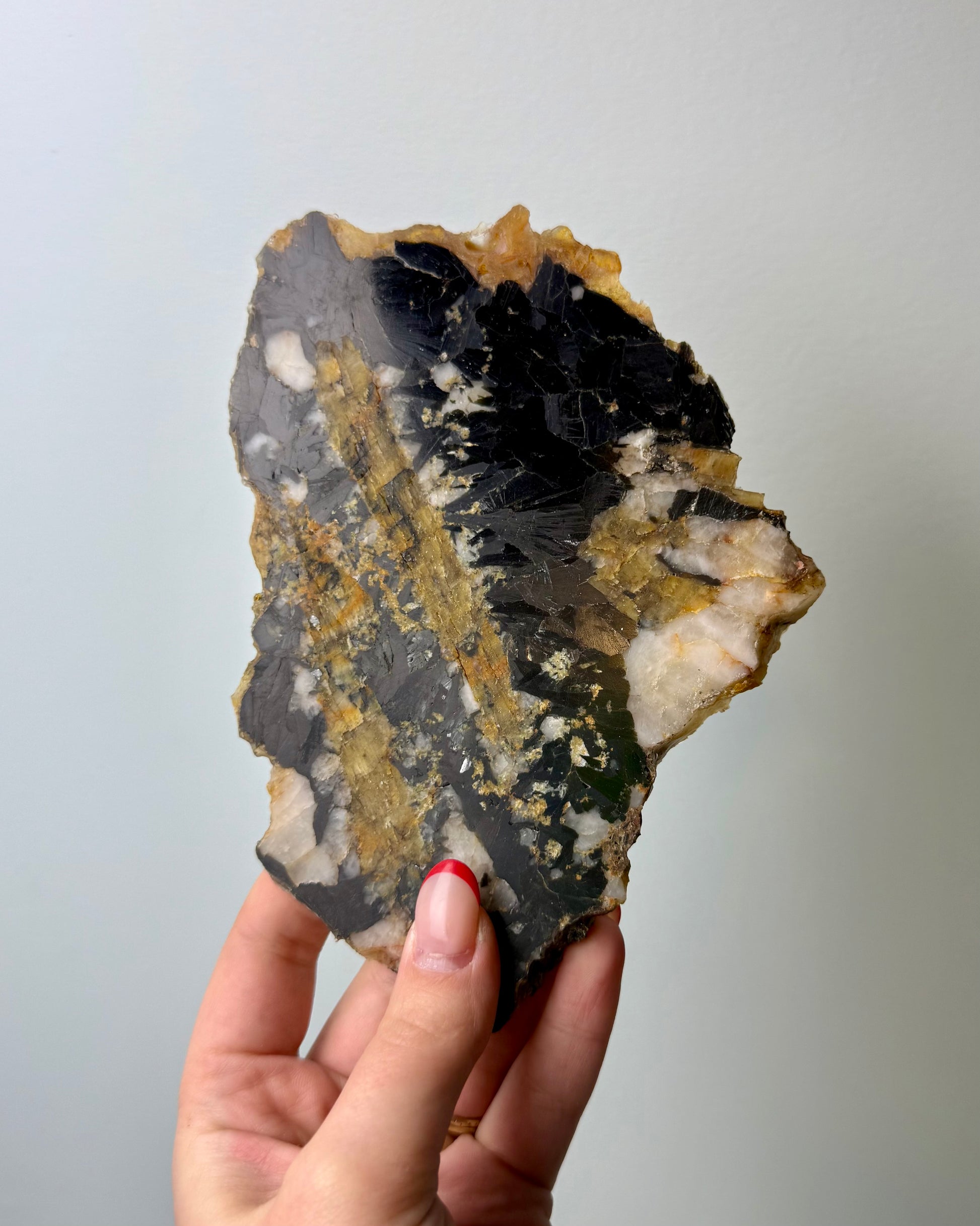 Black yellow tourmaline with mica slab