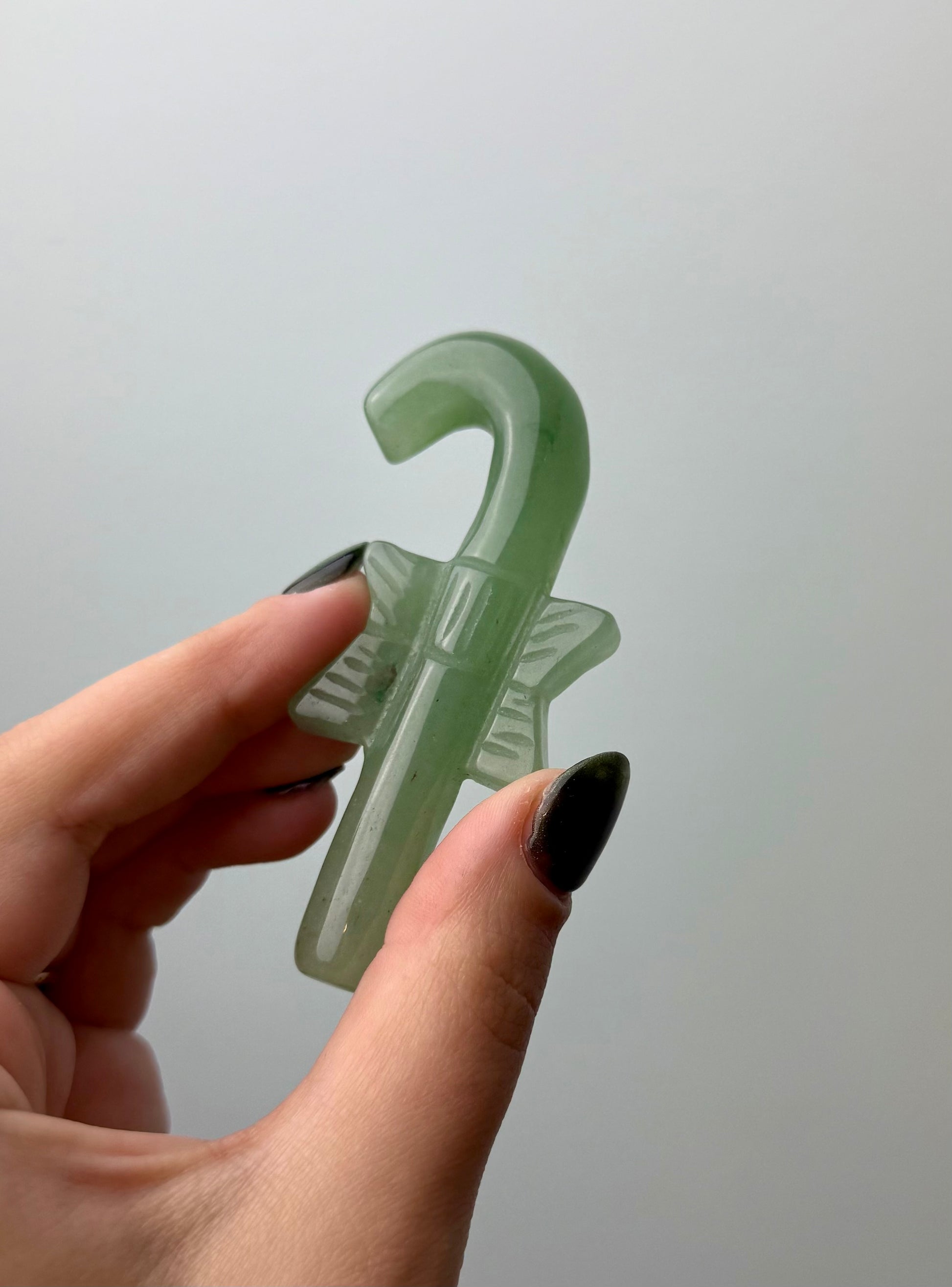 Green aventurine candy cane carving