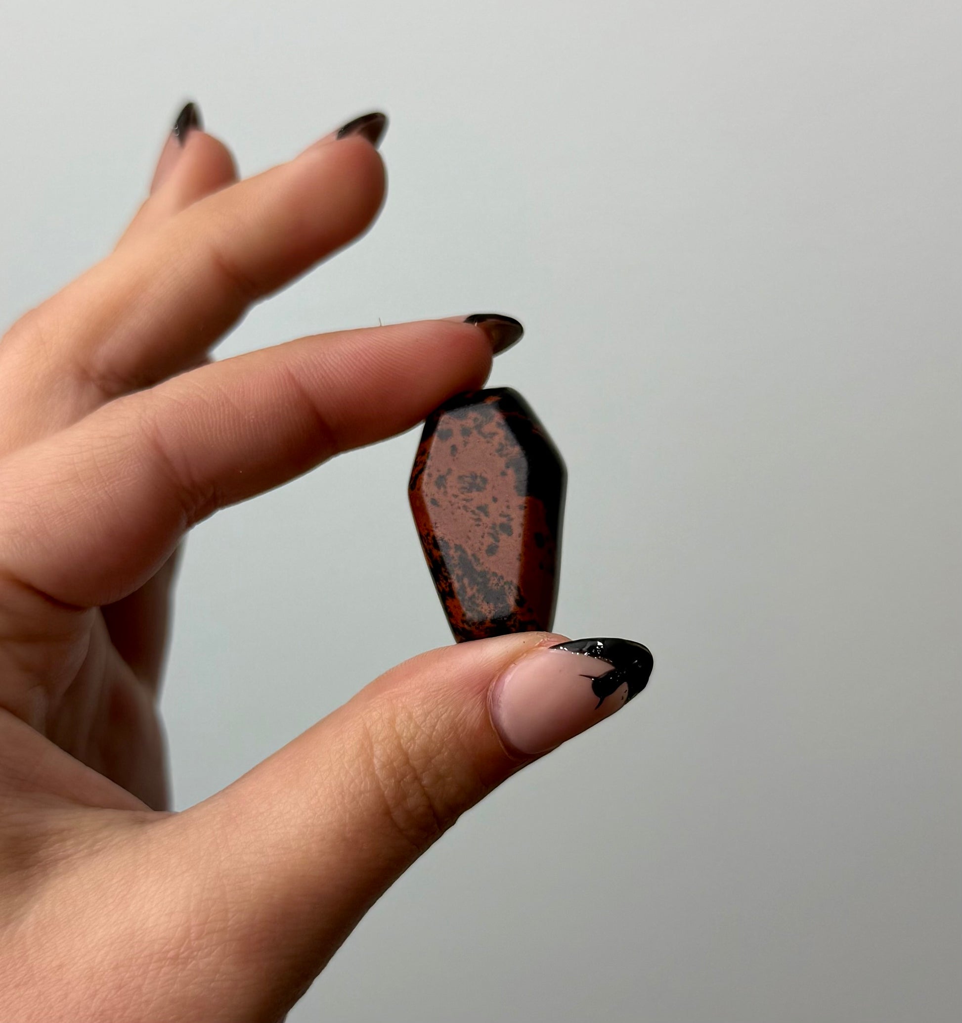 Mahogany Obsidian is uses to relieve pain and improve circulation. Obsidian is also considered to be useful for those suffering from depression or addiction. Mahogany obsidian, in particular, is said to increase sexuality and sensuality, most notably the sense of touch.